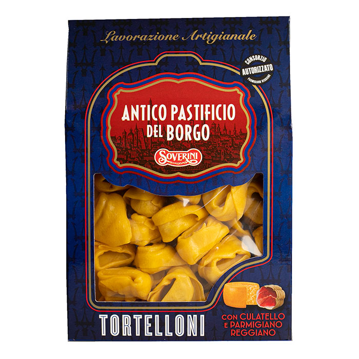 Ripieno (40% sul totale): Ricotta 55% ( Siero di LATTE, LATTE), Culatello 16% ( Coscia di Suino, sale),